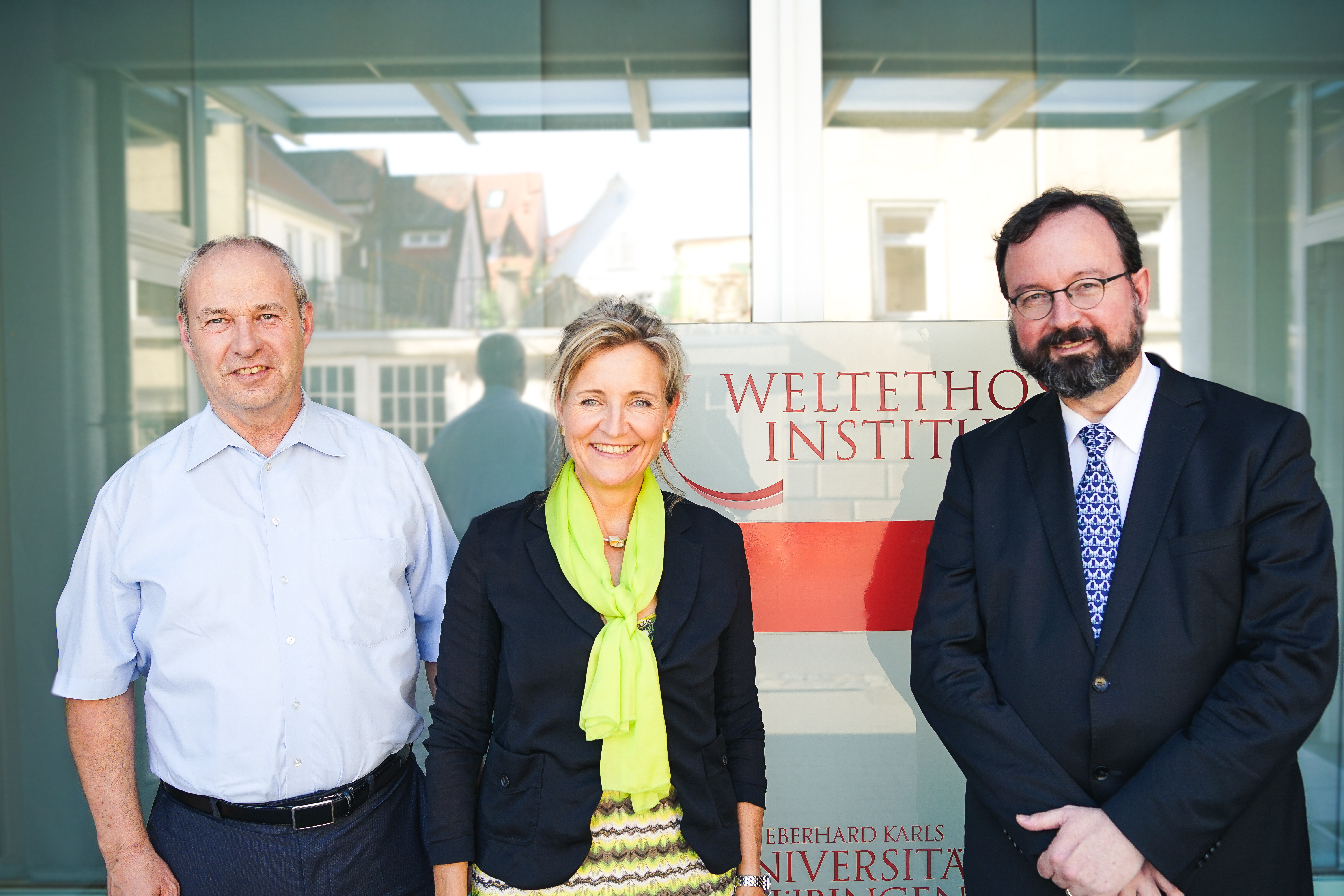(Im Bild vlnr: Michael Kohlhaas, Vorsitzender der Manufaktur für Führungskultur im Mittelstand e.V., Daniela Eberspächer-Roth, Dr. Bernd Villhauer, Geschäftsführer des Weltethos-Instituts)
