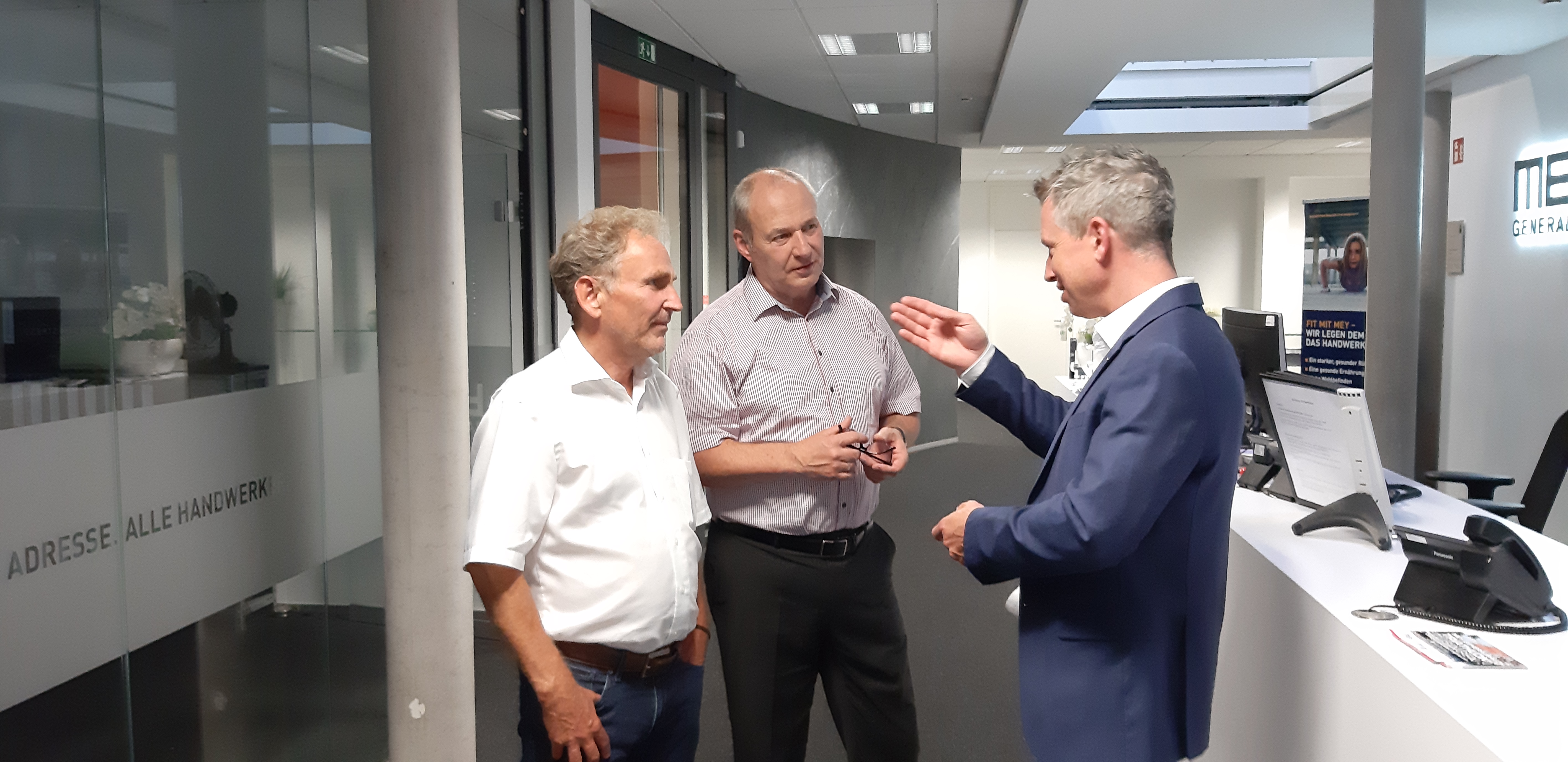 Wir bedanken uns ganz herzlich bei den zahlreichen Teilnehmern an der Veranstaltung für die spannenden Diskussions-beiträge. Vor allen Dingen bedanken wir uns bei Achim Mey (im Bild rechts, Dr. Ulrich Lohmann (Mitte), Autor rechts) von der Mey Generalbau GmbH, in dessen Geschäftsräumen wir Gast sein durften.