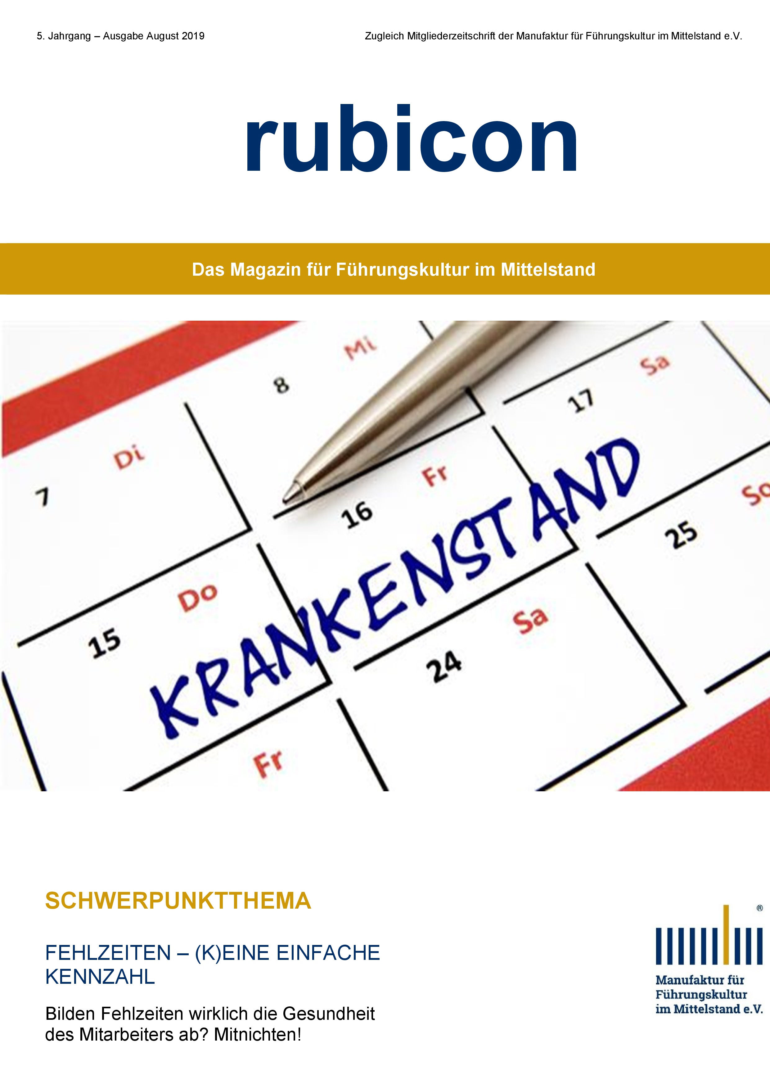 Lesen Sie im rubicon Ausgabe August 2019: BILDEN FEHLZEITEN WIRKLICH DIE GESUNDHEIT DES MITARBEITERS AB? MITNICHTEN!