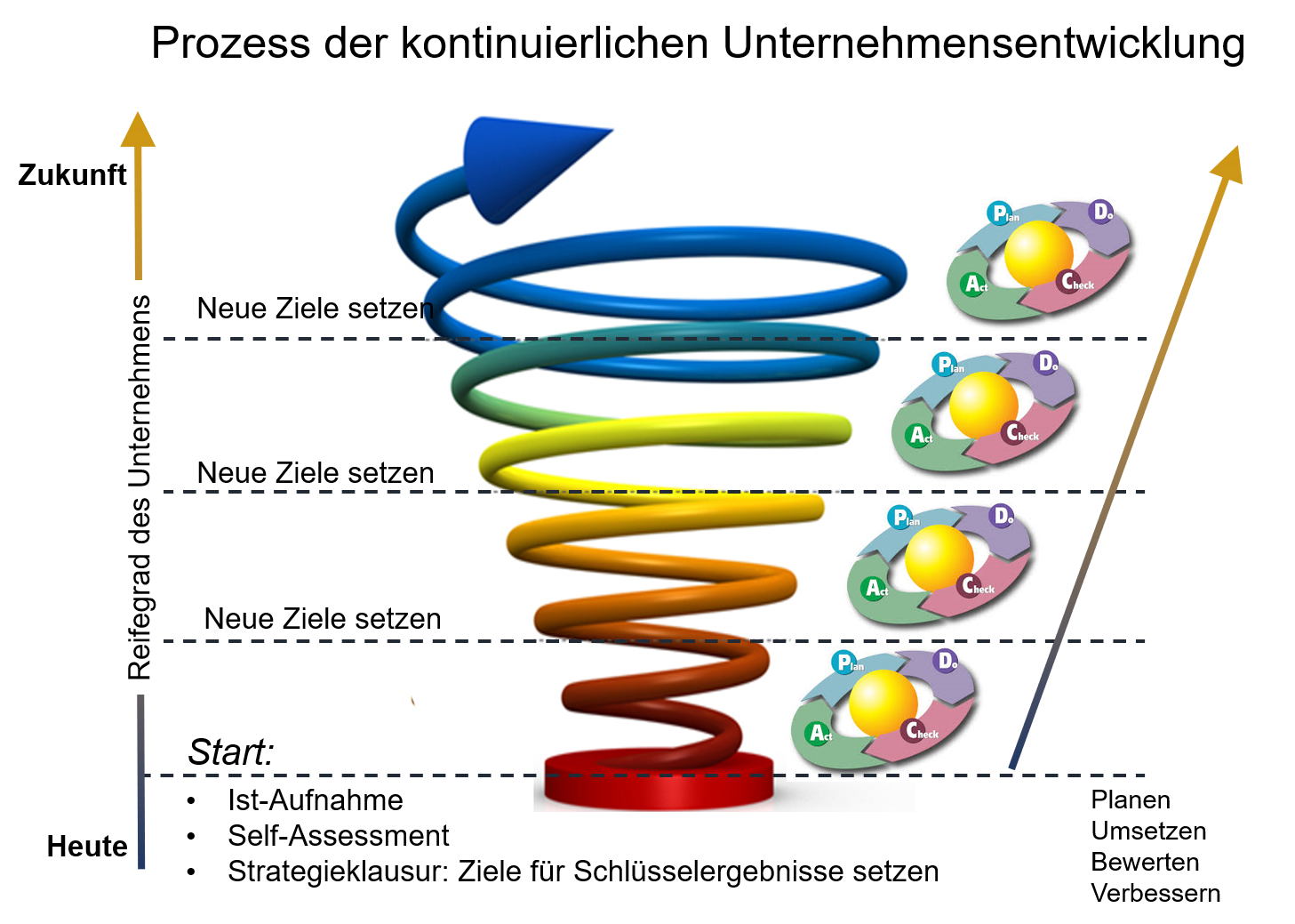 Und auch hierfür ist die Bereitschaft zur Veränderung, zur Agilität eine unabdingbare Voraussetzung. Die Bereitschaft, sich ständig zu hinterfragen, sich selbst zu bewerten oder sich im Rahmen von externen Assessments bewerten zu lassen. Nur auf diese Weise – so die einhellige Meinung aller Preisträger – werden systematisch und permanent die Potenziale ermittelt und in Angriff genommen. Die EFQM-Systematik hilft dabei, den Fokus zu behalten, sich nicht zu verzetteln und die Themen „konsequent und diszipliniert“ abzuarbeiten.