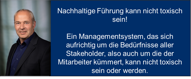 Wenn Sie die Themen dann mit demselben Elan angehen wie in Ihrem Kerngeschäft, dann wird „toxische Führung“ in Ihrem Unternehmen ein Fremdwort bleiben. Die unternehmerischen Ergebnisse werden messbar besser ausfallen und auch die Attraktivität als Arbeitgeber in einem immer enger werdenden Arbeitsmarkt wird spürbar steigen.