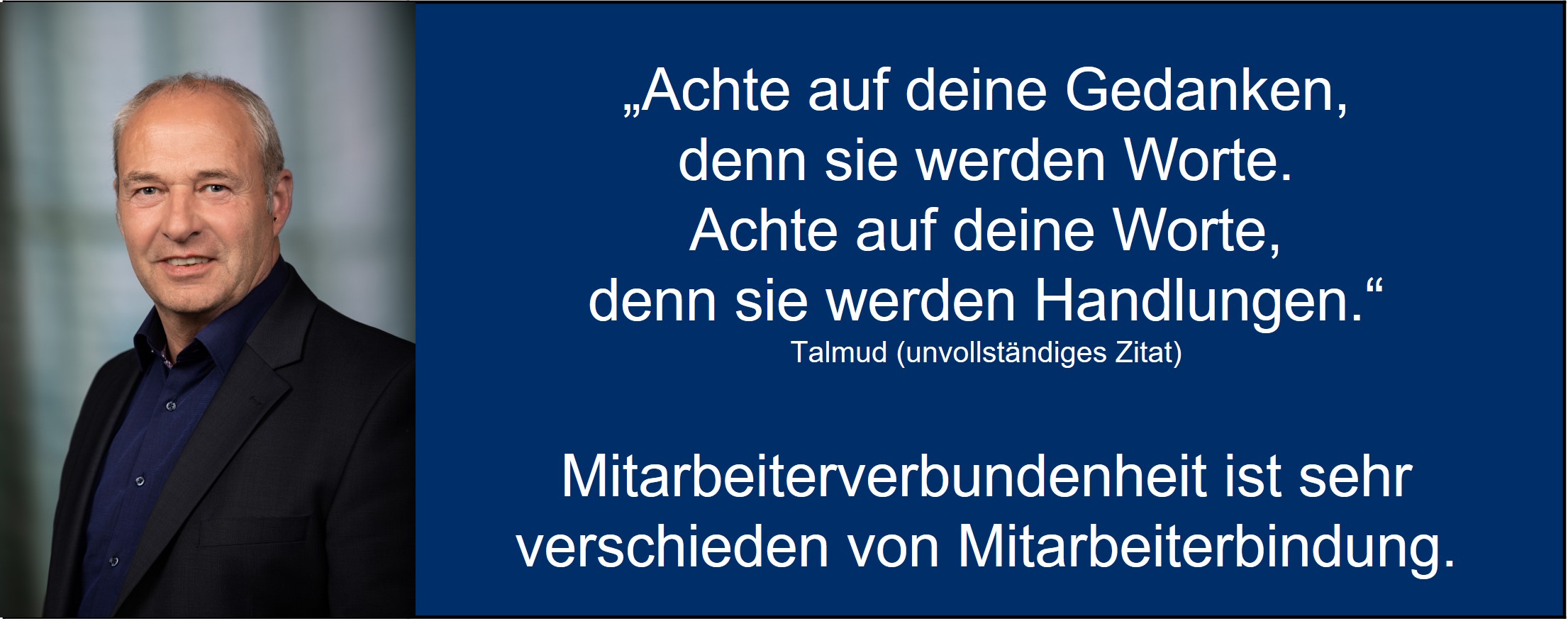 - Ich kann meine Mitarbeiter*innen langfristig nicht binden. Ich kann aber die Führungs- und Unternehmenskultur so gestalten, dass die Mitarbeiter*innen sich dem Unternehmen maximal verbunden fühlen.