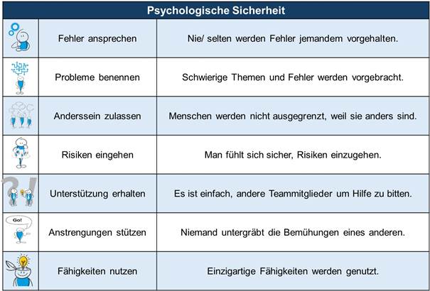 Die Erklärung: In den guten Teams waren die Bereitschaft und die Offenheit höher, von Fehlern zu berichten, damit das Team daraus lernen konnte. Die Mitglieder dieser Teams fühlten sich in ihrer Arbeitsumgebung und bei ihren Kollegen psychologisch sicher genug, um Schwächen, Fehler und Lernerfahrungen zu kommunizieren, da sie keine negativen Konsequenzen wie Tadel oder Geringschätzung zu befürchten hatten.