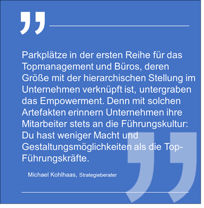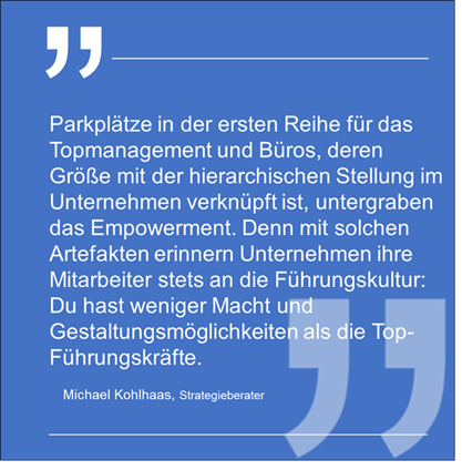 Offenkundig wird Führungskultur durch das, was Edgar Schein mit „Artefakten“ in seinem Kulturebenen-Modell beschreibt.