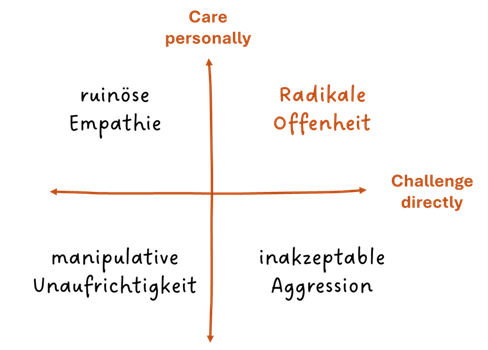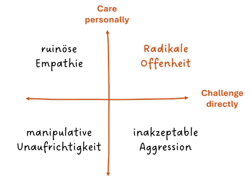 Der Ansatz stammt aus dem Managementkonzept Radical Candor von Kim Scott nach dem Prinzip: