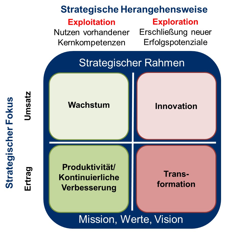 Beide Ausrichtungen sind in meinem Denkmodell der strategischen Herangehensweise Exploitation zugeordnet.
