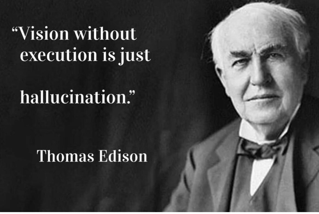 Die Aussage „Vision ohne Ausführung ist Halluzination“ bedeutet, dass eine Vision oder eine Idee, so inspirierend sie auch sein mag, ohne konkrete Umsetzung oder Handeln nichts mehr als eine Fantasie bleibt.